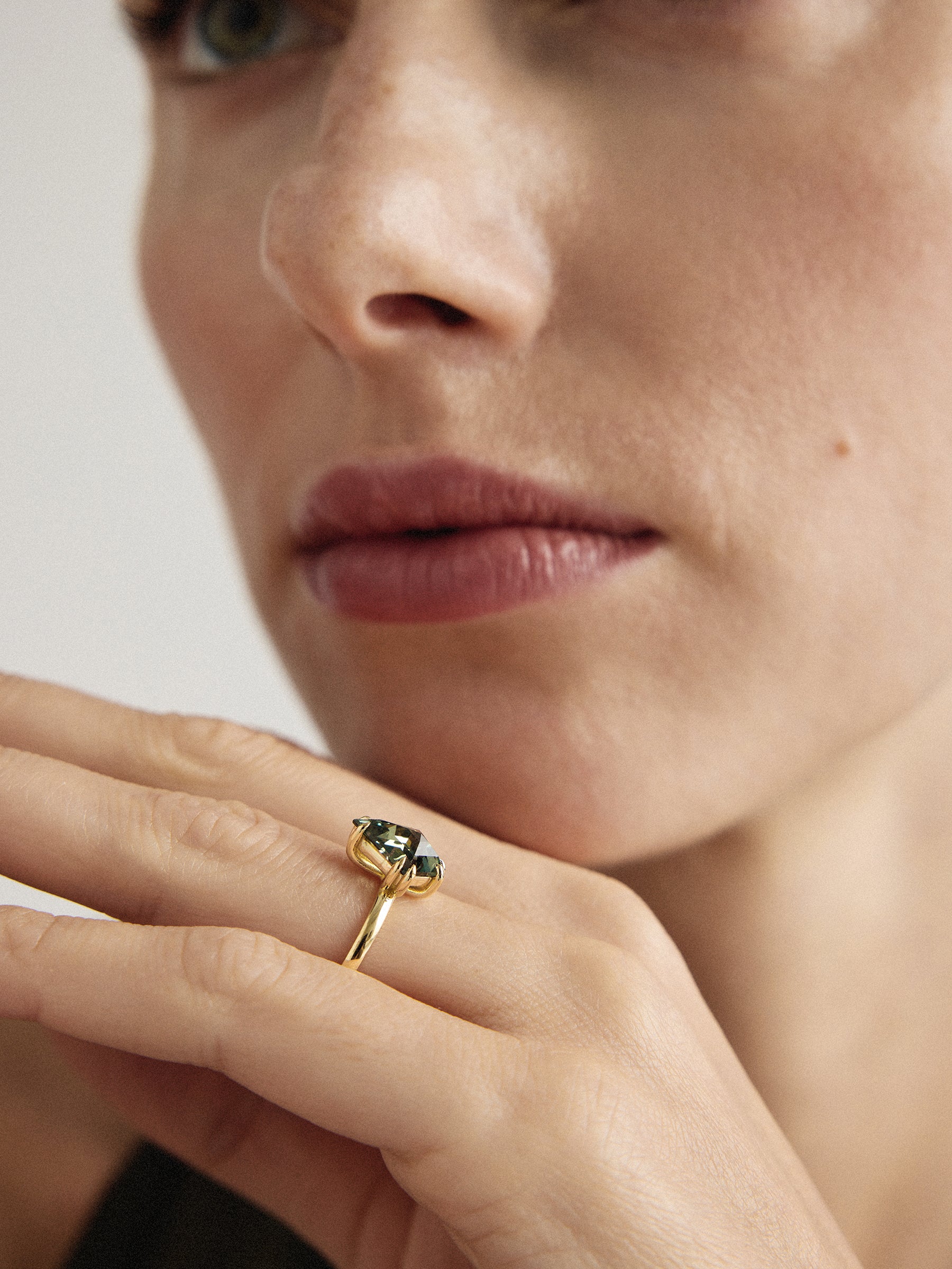 The Arben ring captivates with its stunning 2.19ct kite-shaped green sapphire from Tanzania. With striking mint-to-teal hues and exceptional clarity, this investment-grade gem embodies nature's artistry and masterful craftsmanship — a testament to rarity and fine jewelry design.