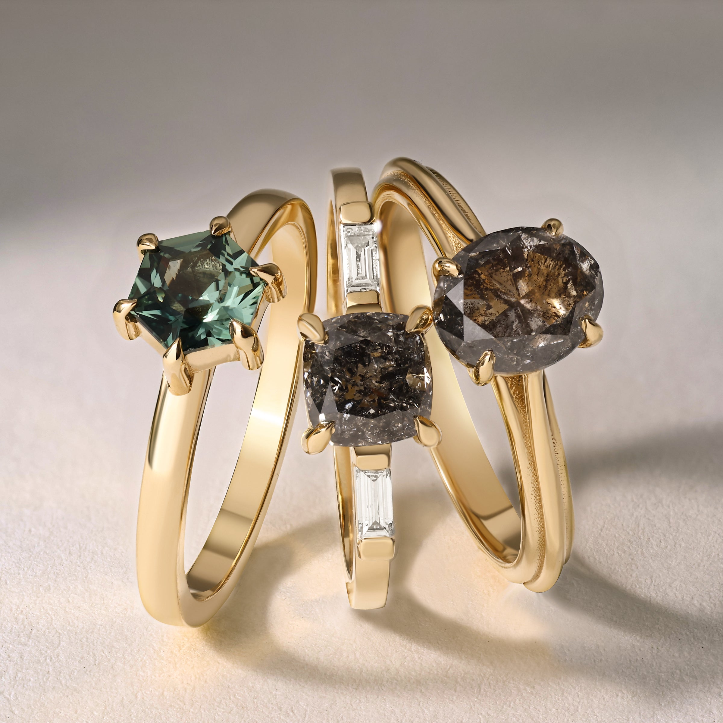Discover Ursula Rickmers handcrafted engagement rings, where Art Deco glamour meets contemporary design. Our ethically sourced salt and pepper diamonds and vibrant sapphires, set in recycled gold, redefine tradition. Each ring is a unique masterpiece, blending timeless elegance with bold innovation—perfect for love stories that break the mold.
