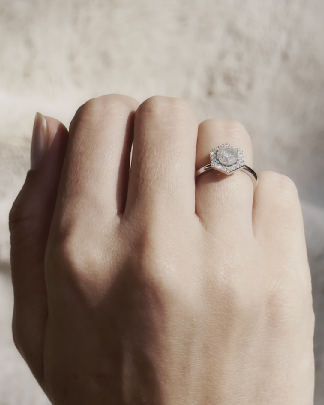 Lilith - Gray Diamond Hexagon Halo Ring